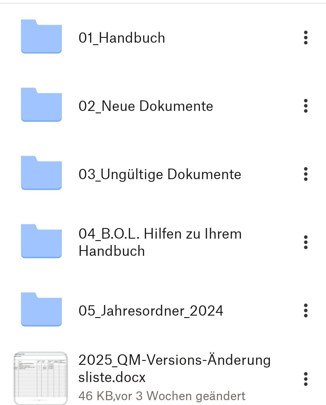 Ebenfalls in diesem Ordner finden Sie die QMS-Schulungen für Ihre Mitarbeitenden (zusätzlich auch über YouTube abrufbar) sowie mehrere Anleitungen zur Nutzung der Cloud und zur Anwendung verschiedener Dokumente.